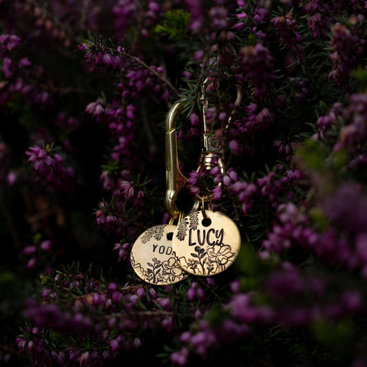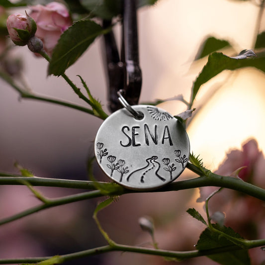 Nasze metalowe adresówki kółka sprawdzą się zarówno u małych, jak i dużych psów. Dzięki ręcznemu wybijaniu wzoru każda sztuka jest jedyna w swoim rodzaju — niepowtarzalna, tak jak Twój pies.