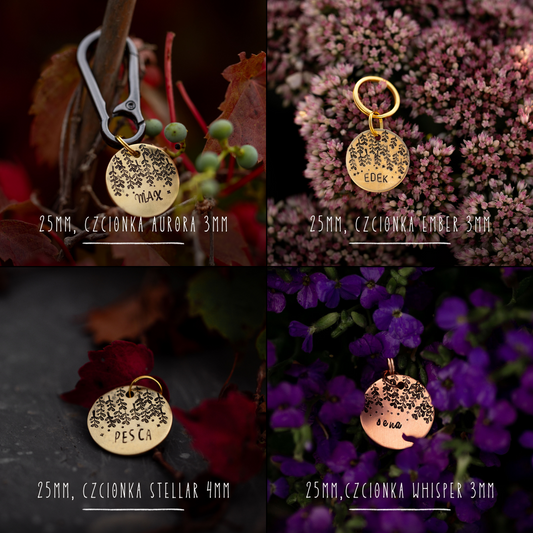 Każda adresówka kółko jest personalizowana — możesz wybrać wzór, czcionkę oraz treść grawerunku. To sprawia, że identyfikator staje się nie tylko praktycznym zabezpieczeniem, ale także stylowym dodatkiem dopasowanym do charakteru Twojego psa i Waszych wspólnych przygód. Wzory inspych przygód. Wzory inspirowane naturą, górami, lasem czy gwiazdami dodają Twojemu psu wyjątkowego stylu, jednocześnie zwiększając jego bezpieczeństwo na spacerach i wyjazdach.