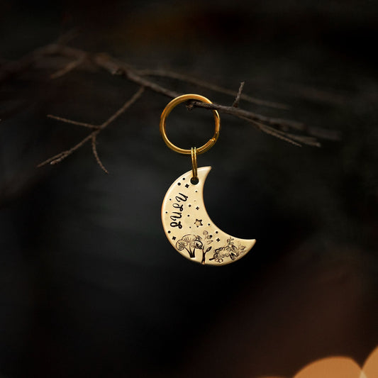 Symboliczny półksiężyc idealnie wpisuje się w estetykę boho, leśną i górską. To nie tylko identyfikator, ale również wyjątkowa biżuteria dla psa, która wyróżnia się na tle standardowych adresówek. Lekka, trwała i w pełni personalizowana – idealna na wszystkie Wasze wspólne przygody.